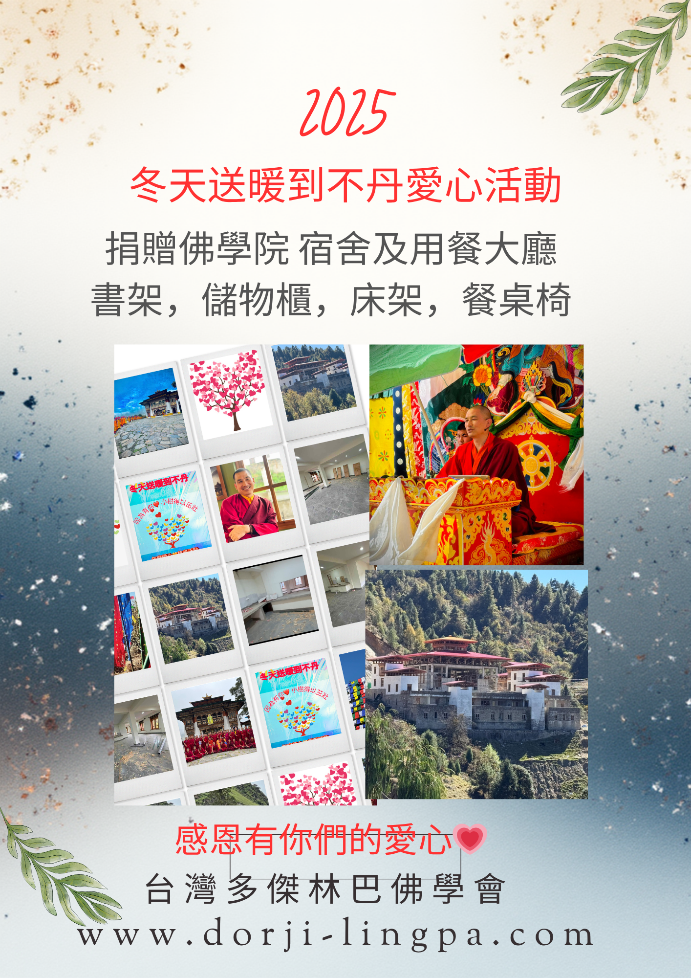 所有贊助及協助此次「冬天送暖至不丹的愛心活動」,寺廟僧眾迴向功德所有贊助者,祝福吉祥如意。