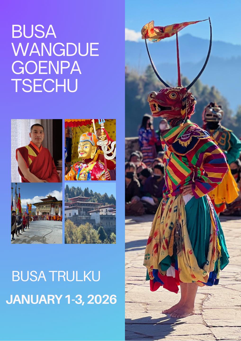 Busa Trulku 堪祖蘇南給稱仁波切於不丹布薩旺度祖寺廟,每三年舉行的歲末伏藏金剛舞祈福法會是多傑林巴傳承的特色伏藏修法及金剛舞,有見解脫,聞解脫及觸解脫的功德利益。